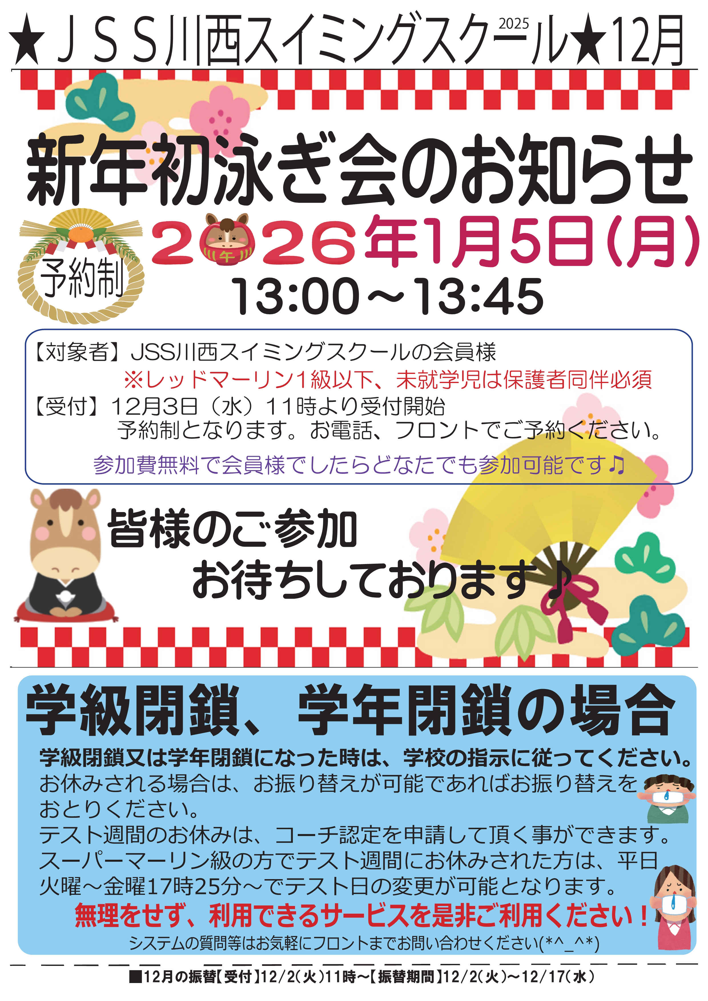1月のレッスンに1回でも出席がある場合は受理できません。 |
